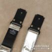 表面がクローム・カラーになっているストラップにレーザー・ブレイド( カミソリの刃) を模したユニークなレザー・エンドを採用したRazor Blade Ends Chrome Webbing です。
