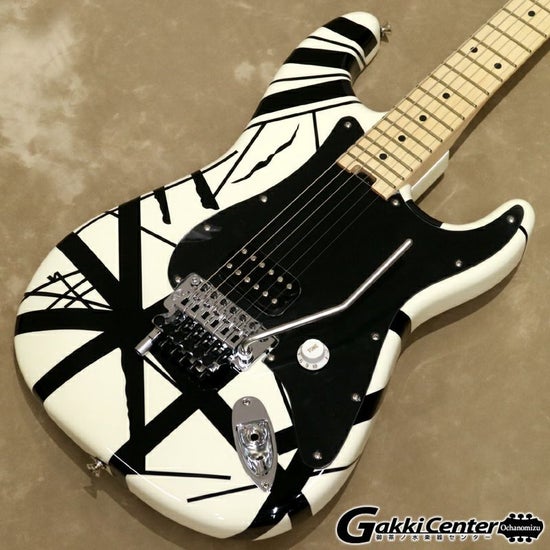 その他、Whiteのシングルヴォリュームコントロール、シングルプライのBlackピックガード(White with Black Strioesモデルのみ)、Floyd Roseロックナット、EVHブランディングされたFloyd RoseロックトレモロとEVH D-Tuna、EVHダイキャストチューナー、クロームハードケース、ヴィンテージスタイルストラップピン、EVHネックプレートをフィーチャーしています。