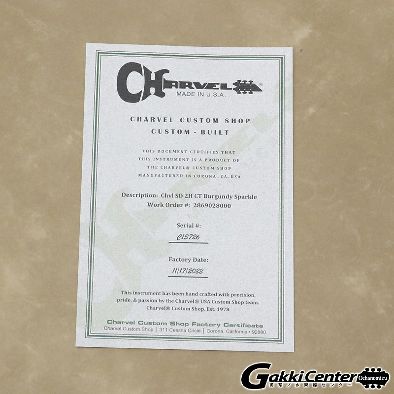 他の画像を見る [Outlet]Charvel ( シャーベル ) USA Custom Shop Limited Edition San Dimas NOS, Burgundy Mist Metallic [S/N: C13845] 通常価格 : ¥ 800,800 (税込) 当店販売価格 : ¥ 649,000 税込 Outlet 店頭在庫 在庫切れ 詳細を見る
