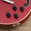 ディアンジェリコらしさを感じるオリジナル形状のピックガードは、fホールの一部を思わせるデザインで、ボディー・カラーに合わせたカラーとなっています。