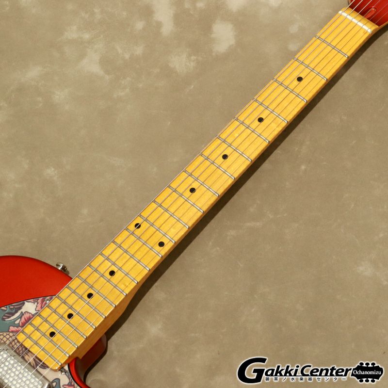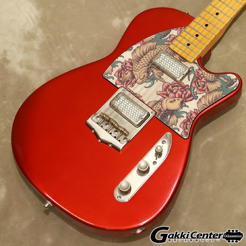 デザインもマット仕上げのキャンディアップルレッドボディに、花と魚をモチーフにしたド派手なピックガードです。