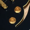 ネックは手に馴染むシルク・フィニッシュ(艶なし)、ボディーとヘッドはグロス・ラッカー・フィニッシュを採用し、ブラック・カラーのヘッドストックにゴールド・ピックガードを組み合わせています。