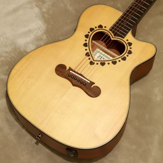 ゼマイティスの伝統的なハート型のサウンドホールの周りに特徴的なハートをちりばめたデザインとマスターシュ・ブリッジのオリジナル・デザインは非常に魅力的です。