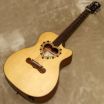 また、板材の時に真空状態で熱を加えることで余分な水分やミネラルを取り除いたソリッド・スプルースをボディ・トップに使用している点が特長で、サイドとバックにはサペリを採用し、狂いの出にくい安定したボディ剛性を実現しました。