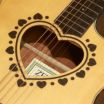 ●サウンドに広がりを与えるハート形状のサウンドホールと、ハートとドットが交互にちりばめられたローズウッド柄のロゼッタ