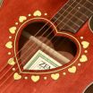 ●サウンドに広がりを与えるハート形状のサウンドホールと、ハートとドットが交互にちりばめられたメイプル柄のロゼッタ