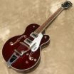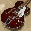 生き生きとした響きを提供するG5420Tは、トレブルブリードサーキットとマスターボリュームを含む、様々なアップグレードを施されたコントロール部を持ち、 マスタートーン、個々のピックアップボリュームコントロールと3ポジションピックアップトグルスイッチ、バインディング加工された50年代後半の小ぶりなG6120バウンドヘッドストック、ヴィンテージスタイルのオープンバックチューニングマシン、Graph Tech NuBoneナット、パーロイドのeo-Classicサムネイルインレイ、安定したAdjusto-Maticブリッジ、Bigsby B60ヴィブラートテールピースを備えています。