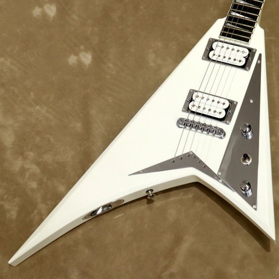 MJ Series Rhoads RRTは、鋭角なホワイトヘッドストック、クロムピックガード、クロムハードウェアを備えたSnow Whiteフィニッシュのクラシックで大胆なスタイリングが魅力です。