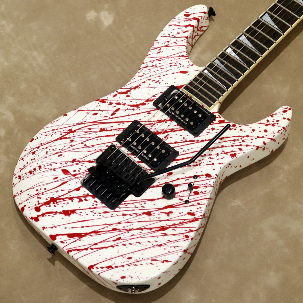 ジャクソン・カスタムショップより、白地に飛び散った血が鮮明な印象を与えるソロイストが入荷いたしました!