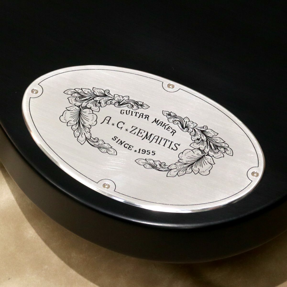 ●コントロール・バック・プレートには、「A.C.ZEMAITIS SINCE 1955」の文字が彫金されている