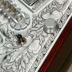 ボディー・トップの大きなアルミ合金プレート全面に、ゼマイティスらしいリーフ・デザインの彫金装飾が刻まれたクラシックなルックスが特徴です。