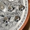 同様にアルミ合金を用いたヘッドのダイアモンド・エンブレム、トラスロッド・カバー、テイルピースやピックアップ・リングをはじめ、アウトプット・ジャック・プレート、コントロール&スイッチ・バック・プレートに至るまで装飾を施しています。