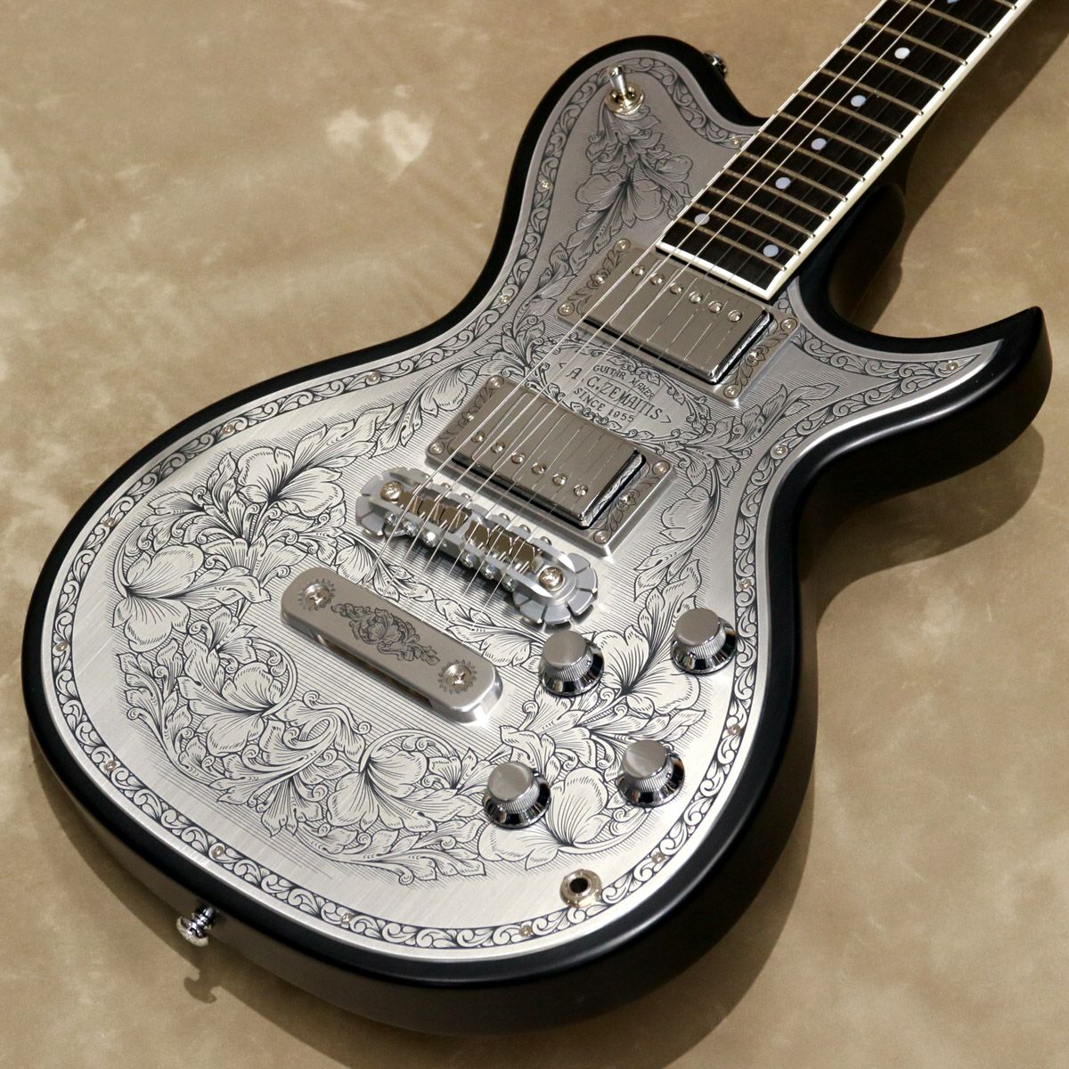 ●2つのピックアップの間には、「A.C.ZEMAITIS SINCE 1955」の文字が彫金されている。