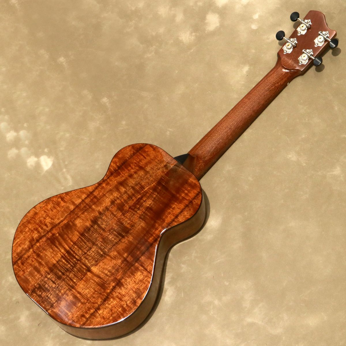 DTK-2カスタム・テナーは、波紋のように美しいトーンウッドが輝きを放ち、ハイグロス・フィニッシュがアクセントになっています。