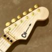 また、コンパウンド・ラジアスを採用したメイプル・フィンガーボードは、若干角を丸めたロールド・エッヂを採用し、ブラック・ドットのポジションマークが6弦側にオフセットされています。