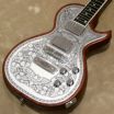 同様にアルミ合金を用いたヘッドのダイアモンド・エンブレム、トラスロッド・カバー、テイルピースやピックアップ・リングをはじめ、アウトプット・ジャック・プレート、コントロール&スイッチ・バック・プレートに至るまで彫金を施しています。