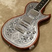 「ヘッドに取り付けているダイアモンド・エンブレムを、メタル・ピックガードのデザインに採り入れてみてはどうか?」という発想が元になり、生まれたデザインです。