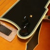 ディアンジェリコらしさを感じるオリジナル形状のピックガードは、fホールの一部を思わせるデザインで、5プライのブラックとなっています。