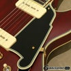 オリジナルの14インチ幅、1.75インチ厚の小振りなダブル・カッタウェイ・シェイプにセンター・ブロック構造をもったセミホロー・ボディーのモデルのDeluxe Mini DC P-90は、ディアンジェリコらしさを感じるオリジナル形状のピックガードは、fホールの一部を思わせるデザインで、5プライのブラックとなっています。