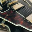 オリジナルの15インチ(381mm)幅、1.75インチ(44.45mm)厚のシングル・カッタウェイ・シェイプにセンター・ブロック構造をもったセミホロー・ボディーのExcel SSは、ディアンジェリコらしさを感じるオリジナル形状のピックガードは、fホールの一部を思わせるデザインで、5プライのクリーム・パールとなっています。