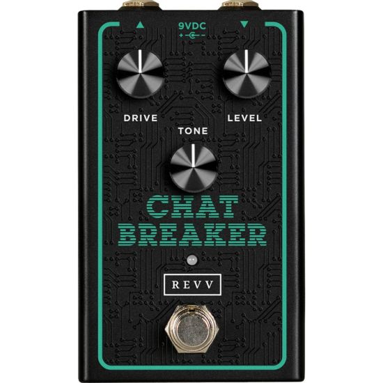 カナダのハイエンドなアンプ&エフェクター・ブランドであるレヴ・アンプリフィケーションのチャットブレイカーは、シンプルなコントロールで多彩なトーンを実現したエフェクト・ペダルで、レヴ・アンプリフィケーションの開発チームが、新たなエフェクター・デザインを人工知能(AI)にて行おうと実験したところ、1990年代初頭に英国アンプ・メーカーから発売されたオーバードライヴを基にした回路のアイディアが提示されたが、全く上手くいかず、結局のところ、AIに提示された透明感のあるオーバードライヴ系のエフェクターとして、自社での回路設計・開発をしたというエピソードをもったモデルです。